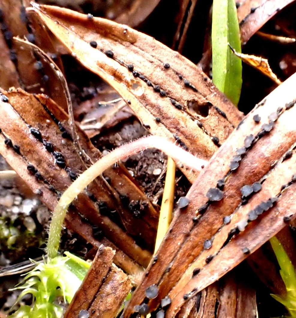 08.04.2026: So gut wie alles, was irgendwo wächst, kreucht oder fleucht, hat seinen persönlichen Pilz oder sogar mehrere. Da macht der Wegerich keine Ausnahme. Entlang seiner Blattnerven erscheint nicht selten unser aktueller Fundkorbpilz, der Wegerich-Schwarzaderpilz Spilopodia nervisequa, den kaum jemand kennt. Nach unseren Beobachtungen scheint er den Spitzwegerich zu bevorzugen. Seine grauen Apothecien werden kaum größer als 1 mm. (Dieter Gewalt) Mehr lesen >