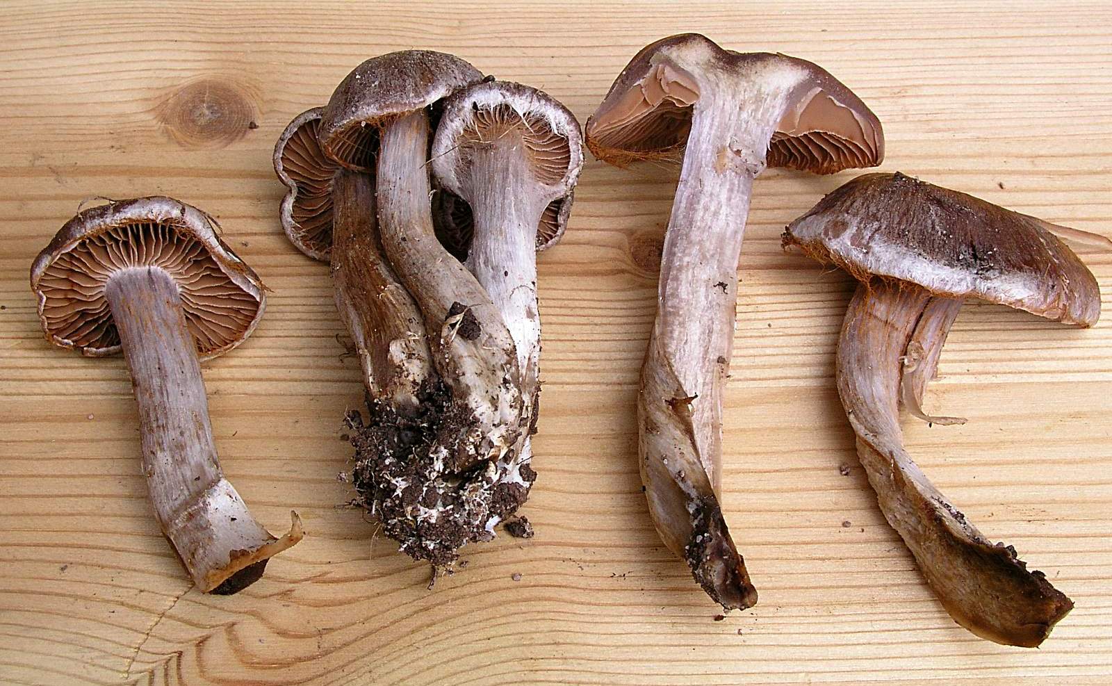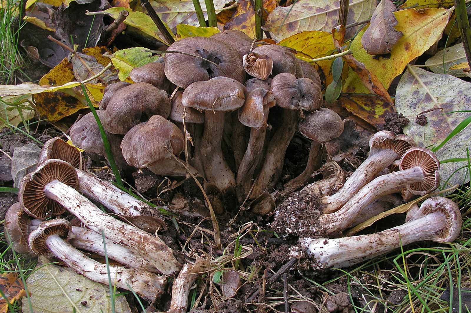 Dieser interessante Fund stammt aus meinem Garten in Straubenhardt (nördliches Schwarzwaldgebiet), wo er seit Jahren regelmäßig von Spätsommer bis Herbst bei einer ca. 15 – 20 m hohen Salweide erschienen ist. Wachstum mal einzeln, mal gesellig, sogar bübschelig mit bis zu 50 Exemplaren. Die Hutfarben variierten von rein braun bis braun mit deutlichem Violettstich. Auffällig waren die ebenfalls braunen, mitunter ebenfalls violettstichigen Lamellen mit weißlicher Schneide sowie das üppige weiße Velum am gesamten Fruchtkörper.