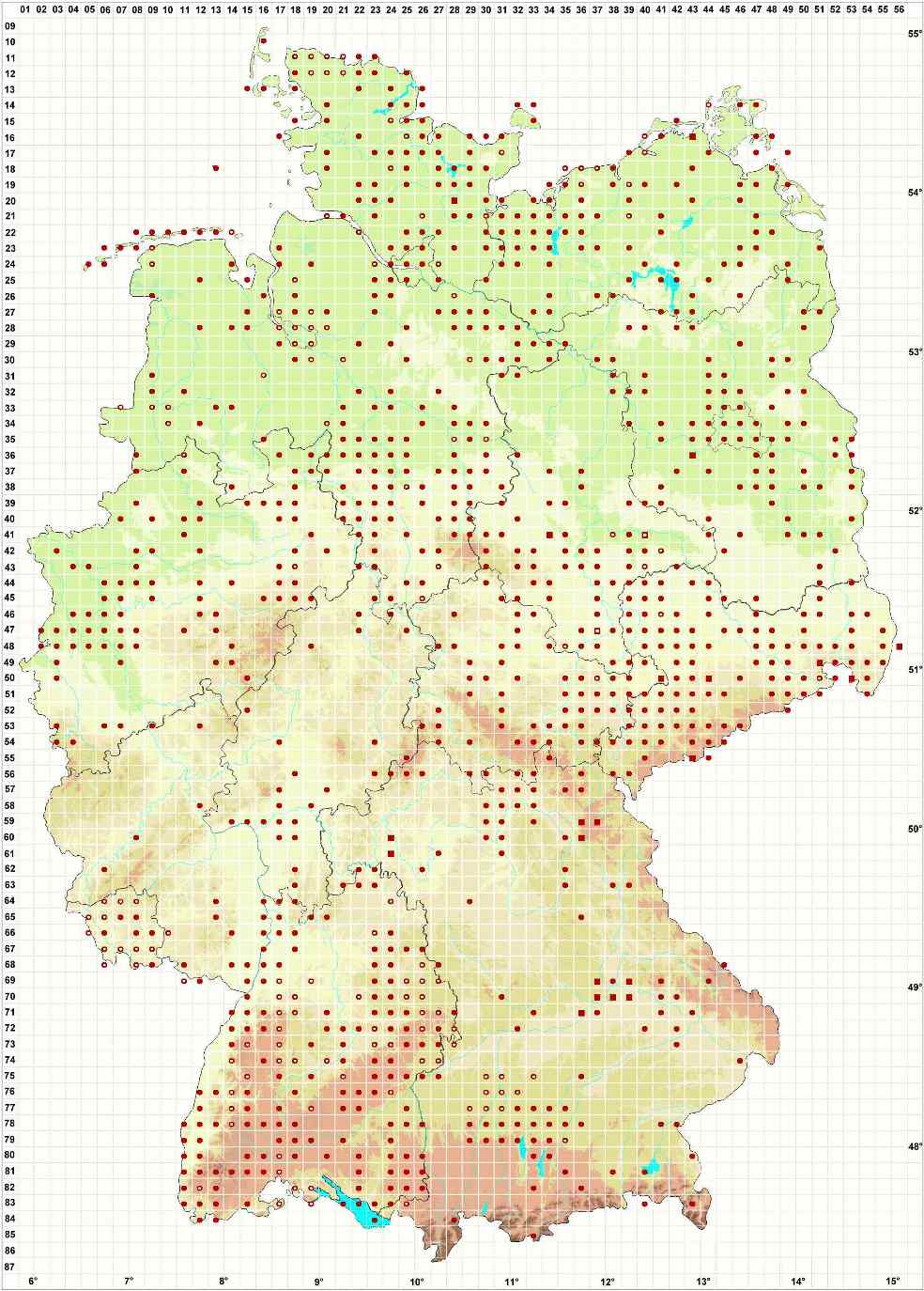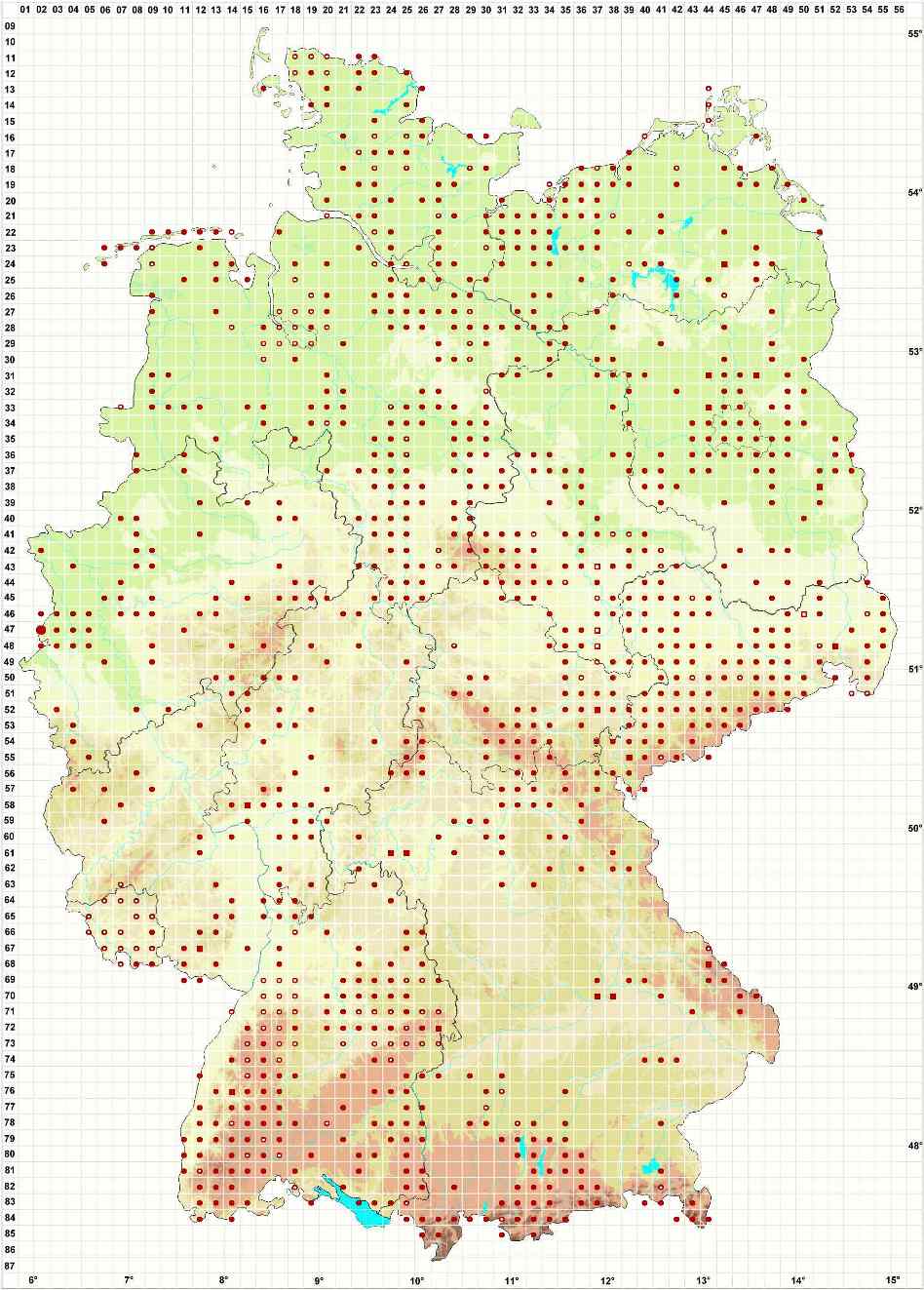 Die in den hier gezeigten Verbreitungskarten der DGfM vorhandenen Lücken sind durch mangelnde Kartierung zu erklären. Sie wären bei gezielter Suche mit Sicherheit auch da nachweisbar.